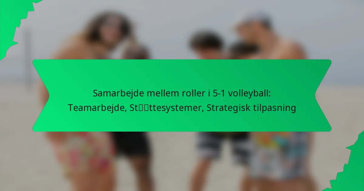 5-1 volleyballsystemet, der har fem angribere og én opsætter, er stærkt afhængigt af samarbejde blandt holdmedlemmerne for at optimere præstationen. Ved at fremme teamwork, forbedre kommunikationen og tilpasse strategier kan spillerne udføre spil mere effektivt og tilpasse sig modstandernes taktik. Støttesystemer, såsom strukturerede øvelser og effektiv coaching, styrker yderligere dette samarbejdsmiljø, hvilket fremmer både individuel og kollektiv vækst på banen.
