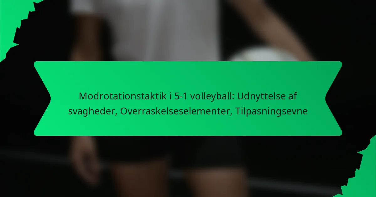 Modrotationstaktik i 5-1 volleyball involverer en strategisk tilgang, hvor spillerne justerer deres positioner for at udnytte svaghederne hos det modstående hold. Denne metode forbedrer tilpasningsevne og overraskelseselementer, hvilket gør det muligt for hold at opretholde en offensiv fordel gennem hele kampen.