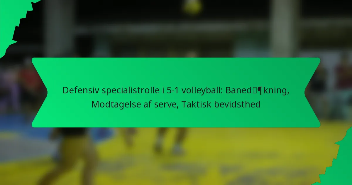 Den defensive specialist i et 5-1 volleyballsystem spiller en vigtig rolle i at styrke holdets forsvar, med fokus på modtagelse af serve og dækning af banen. Denne position kræver stærk taktisk bevidsthed og effektiv kommunikation for at forudse spil og sikre problemfri koordinering med holdkammeraterne. Ved at mestre baneplacering og forstå serve-mønstre lægger den defensive specialist fundamentet for succesfulde offensive overgange.