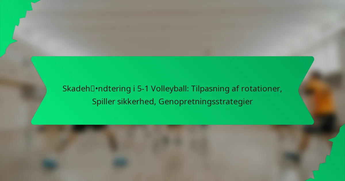 Skadeshåndtering i 5-1 volleyball er afgørende for at opretholde spillernes sikkerhed og præstation. Ved at tilpasse rotationer og implementere effektive sikkerhedsprotokoller kan hold minimere risikoen for skader, samtidig med at de sikrer, at spillerne forbliver på deres bedste. Derudover er det vigtigt at fokusere på genopretningsstrategier, herunder rehabilitering og ernæring, for at lette en sikker tilbagevenden til spillet efter en skade.